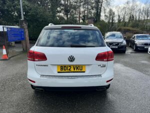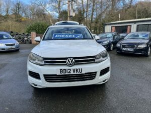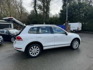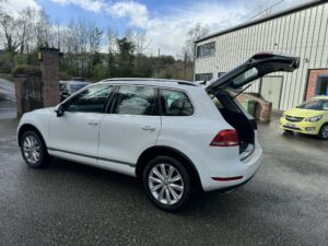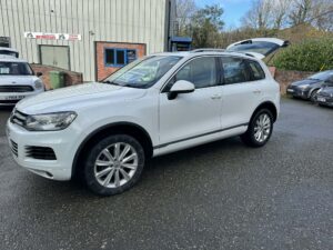 In at JLS Cyttir Lane is this 2012-12 VW Touareg V6 SE Bluemotion with a 3.0L Tdi engine and a 8 Speed automatic Gearbox Its finished in white metallic paint with with Full Black Leather Upholstery