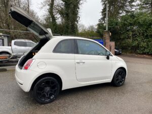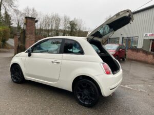 In JLS Cyttir Lane is this 2012 Fait 500 Twinplus 875CC Petrol finished in white with half leather upholstery. Its a 3 door hatch back with 70’880 Miles. This Fiat 500 Street comes with, ABS central locking electric windows radio receives AM/FM/LW C/D Player Connections for USB and auxiliary audio devices, Isofix preparation, power steering Steering wheel mounted remote audio controls, Air conditioning alloy wheels £3995.00